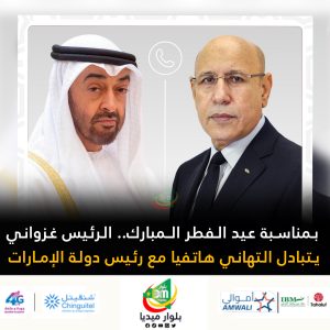 تبادل الرئيس محمد ولد الشيخ الغزواني، رئيس الاتحاد الإفريقي، التهاني و التبريكات، هاتفيا، مع رئيس دولة الإمارات الشيخ محمد بن زايد، بمناسبة عيد الفطر المبارك.