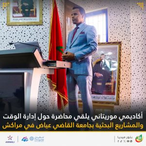 ألقى الأكاديمي الموريتاني الدكتور عبد الودود أبغش، اليوم (الخميس)، محاضرة في كلية اللغة العربية بجامعة القاضي عياض بمراكش، تحت عنوان ”إدارة الوقت والمشاريع البحثية: تقنيات واستراتيجيات للنجاح والتميز.“