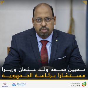 عاجل | رئاسة الجمهورية تصدر مرسوما بتعيين محمد ولد عثمان وزيرا مستشارا برئاسة الجمهورية.