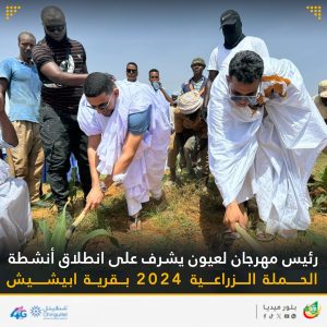 أشرف رئيس مهرجان لعيون المختار ولد اغويزى رفقة عمدة بلدية بالنعمان، اليوم الأربعاء على انطلاق الأنشطة المواكبة للحملة الزراعية 2024 بقرية ابيشيش التابعة لبلدية بالنعمان، حيث قدم للمزارعين بعض المعدات الزراعية.من جهته ثمن عمدة بلدية ابيشيش، عابدين ولد محمد الرعاية التى يوليها القائمون على مهرجان لعيون للتراث للمزارع فى ولاية الحوض الغربى عموما وبلدية بنعمان خصوصا، مؤكدا أنها استجابة فورية لتطلعات رئيس الجمهورية محمد ولد الشيخ الغزوانى.