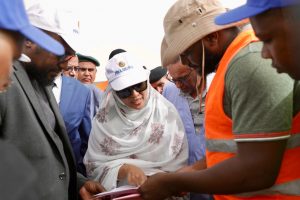 المحطة الأولى من الزيارة كانت لوحدة تحلية مياه البحر قيد الإنشاء في كانصادو، حيث استفسرت عن مكوناتها الفنية والآجال المتبقية لاستلامها.