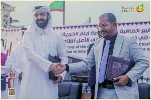 وقعت جمعية إيثار الخيربة للتكفل بمرضى السرطان اتفاقا مع قطر الخيرية للمساعدة في تمويل مستشفى الأمل لعلاج مرضى السرطان تمنح بموجبه قطر الخيرية مبلغ مليار وثلاثة مئة وعشرين مليون أوقية قديمة لجمعية إيثار الخيرية.
